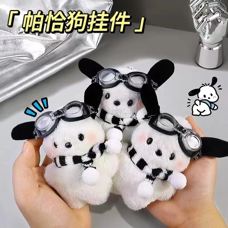Kawaii Sanrio Pilot Pochacco Plushie Keychain Instagram Style Bag Hanging Plush Doll Schoolbag Puppy Pendant Children Gift